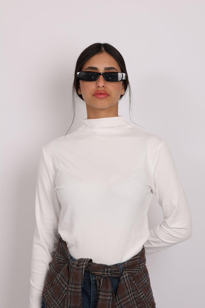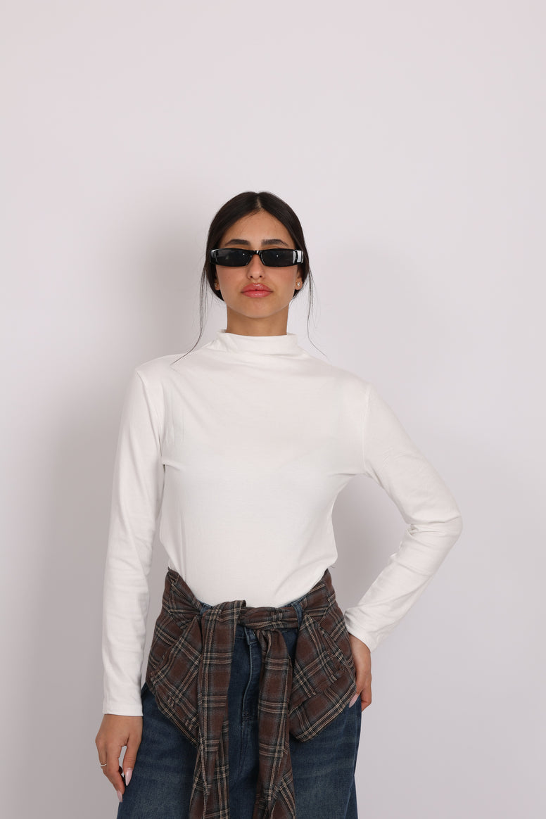 חולצת גולף דקה עשויה בד רך ונעים למגע עם מראה חלק בעלת צווארון גבוה ושרוולים ארוכים.