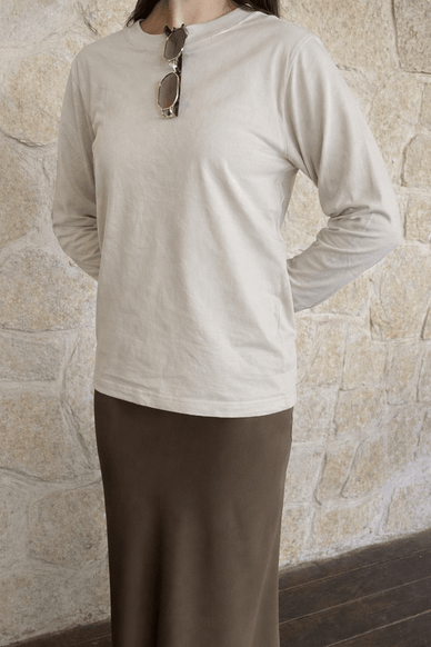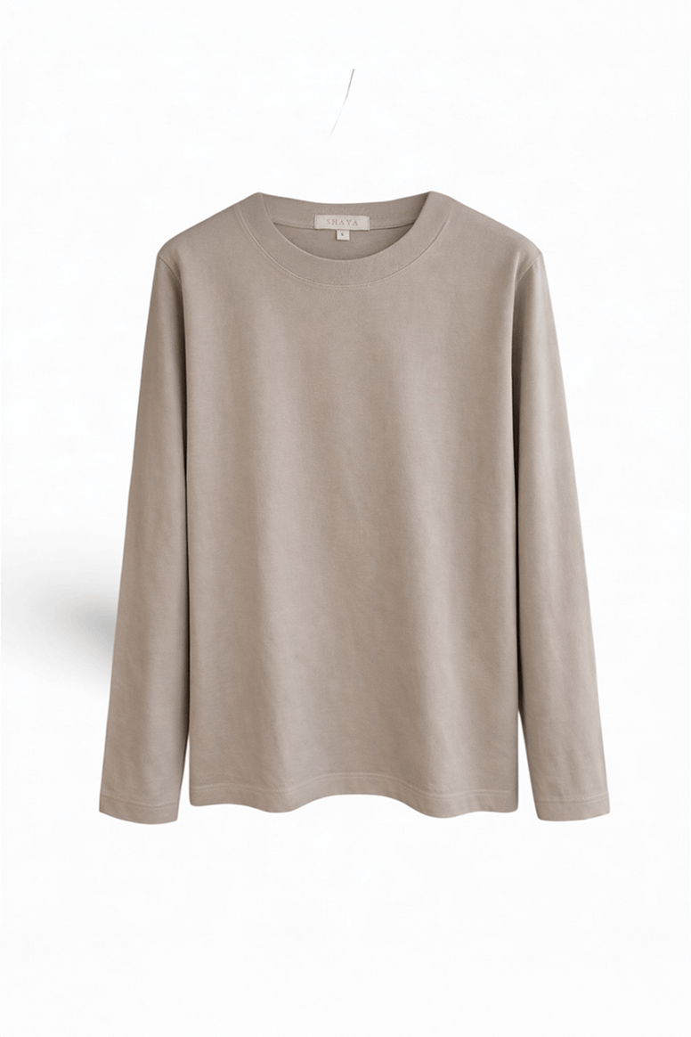 טי-שירט בסיסי מבד כותנה, עם פתח צוואר עגול וגזרה קלאסית, חלק ונעים למגע.